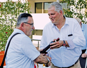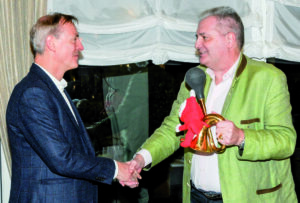 Zur Einstimmung gab’s einen vom «Schäfli» offerierten Apéro. Nach der Begrüssung durch den Stammleiter Dirk Westphalen überreichte dieser zusammen mit seinem Stellvertreter Christian Haltner der Gastgeberin Doris Kamm einen Blumenstrauss als Dank für die freundliche und zuvorkommende Betreuung der Stamm-Gäste während der vergangenen fünf Jahre.