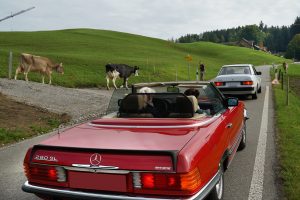 Nach einem kurzen Briefing wurden die Motoren gestartet und die Wagen reihten sich zur Abfahrt ein. Kurt Schweizer stand als Paparazzo am Strassenrand, um alle Wagen beim Start zu fotografieren. Die geballte Frauenpower startete Richtung Osten ins Toggenburgerland.