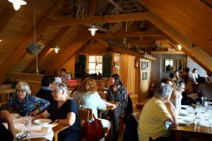 Schule macht hungrig und wir wechselten die Szenerie zum urchigen Restaurant unter dem Dach. Suppe und Salat machen den Auftakt zu einem feinen traditionellen Hauptgang: Appenzeller Siedwürste mit Chäshörnli und Röstzwiebeln.