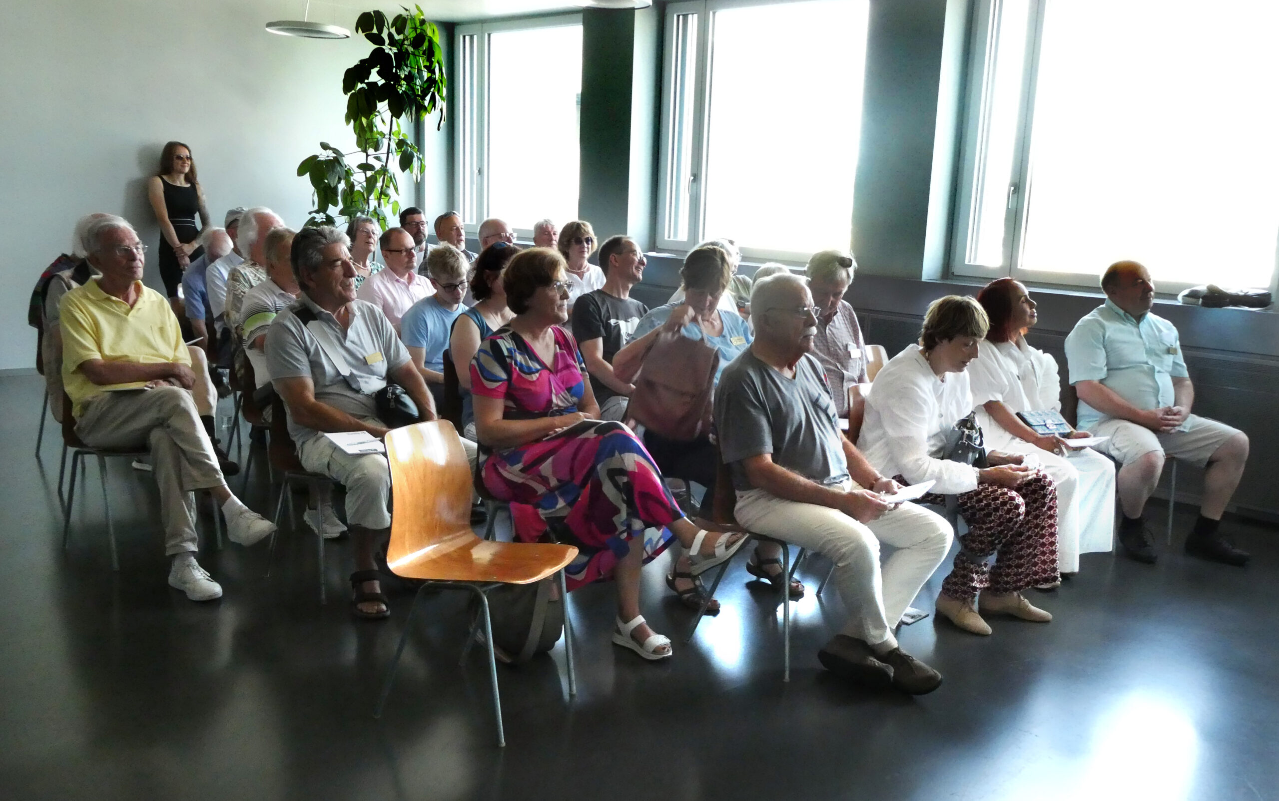 Unsere zwei enthusiastischen Museumsdirektor Andrea-Carlo Polesello und Betreuerin Heike Suter erklärten uns alle Einzelheiten, die in so einem alten und speziellen Haus zu bestaunen sind, das nebst einer wechselnden Sonderausstellung auch Werke einer Künstlerin beinhaltet. Die äusserst farbenfrohen und geometrischen Bilder erinnerten mich an die «Pop-Art» der Siebziger. Die Sonderausstellung unter dem Motto «Woher kommt der Strom?» schien im erstem Moment trivial: Natürlich kommt der Strom aus der Steckdose! Aber halt: Woher kommt er IN DIE Steckdose? Diese Frage ist eher kniffliger und die Antwort ist schon sehr vielfältig. Immerhin konnte man hinterher seinen Durst mit Süssmost oder frischem Brunnenwasser löschen.