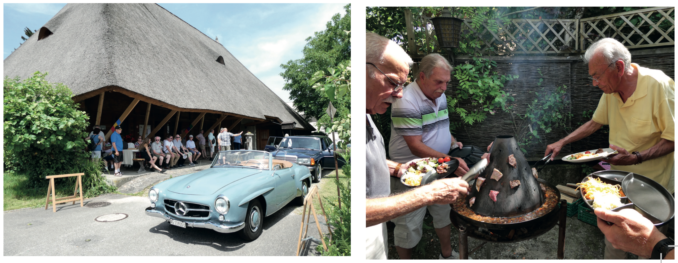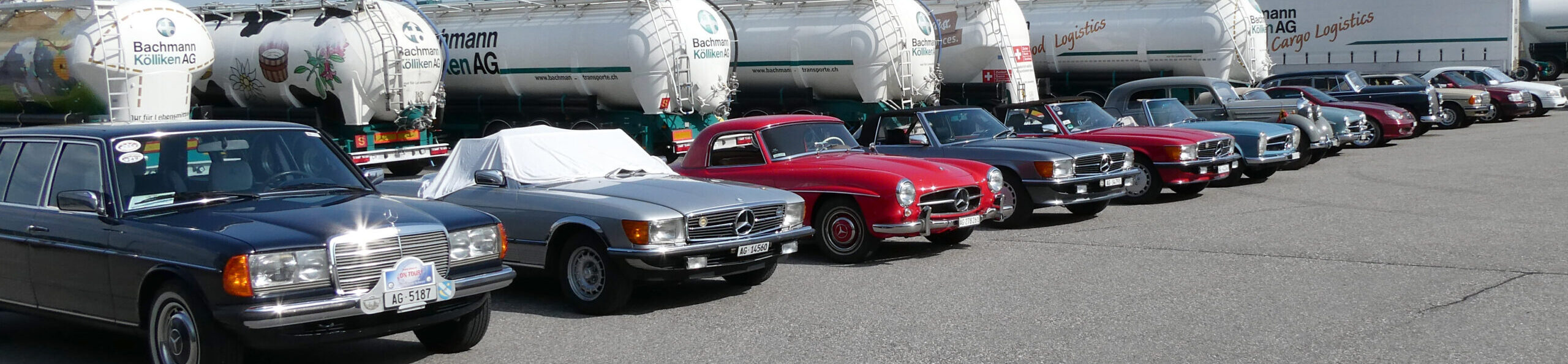 Cabrioletdächer zurückgeschlagen, bei den Oldtimern alle Lüftungen offen und bei den Youngtimern die Klimaanlagen auf volle Kühlung eingestellt – so trafen 17 Fahrzeuge mit 31 Teilnehmerinnen und Teilnehmern an diesem sonnigen Samstagmorgen, 14. Juni auf dem Gelände der «Bachmann AG Transporte» ein.