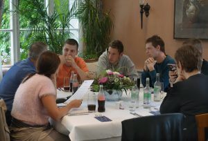 Es war so gegen 12:00 Uhr als alle wieder auf dem Bauernhof eintrafen. Wir verliessen dankend die Familie Schmutz und machten uns auf nach Niedermuhlern, wo uns das Mittagessen erwartete. Der Weg führte uns über Kehrsatz auf den Längenberg. Wer den Blick weg von den vor uns liegenden Hügeln und Bergen nach links richtete, hatte eine wunderschöne Aussicht auf die Stadt Bern und ihre Umgebung. Nach etwa zehn Kilometern trafen wir im Restaurant Bachmühle ein.