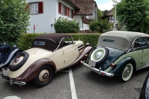 Also, schön der Reihe nach. Treffpunkt ab 08:00 Uhr auf dem Bauernhof der Familie Schmutz. So stand es im Programm. Als Esther und ich um 08:05 Uhr eintrafen, hatten wir fast das Gefühl, wir seien zu spät! Standen doch schon an die 13 sauber herausgeputzte Oldtimer da. Auch das «Binzli» von Doris Amacher durfte nach einer längeren Restauration wieder mal an einer Ausfahrt teilnehmen. Es war schwer festzustellen, wer mehr strahlte; das «Binzli» oder Doris.