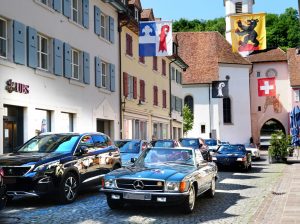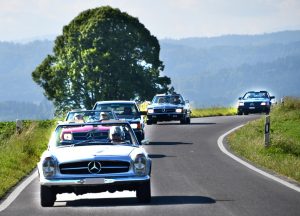 Jetzt kommen sie, Hansruedi fährt vorneweg….so, jetzt, schön, wir sind hinter dem 220er Cabriolet B von Benedikt und Iris und vor dem Heckflossencabriolet von Bernhard und Marlène. Gell, ich muss nicht schauen, wo es durchgeht, Du kennst Dich ja aus in dieser Gegend.