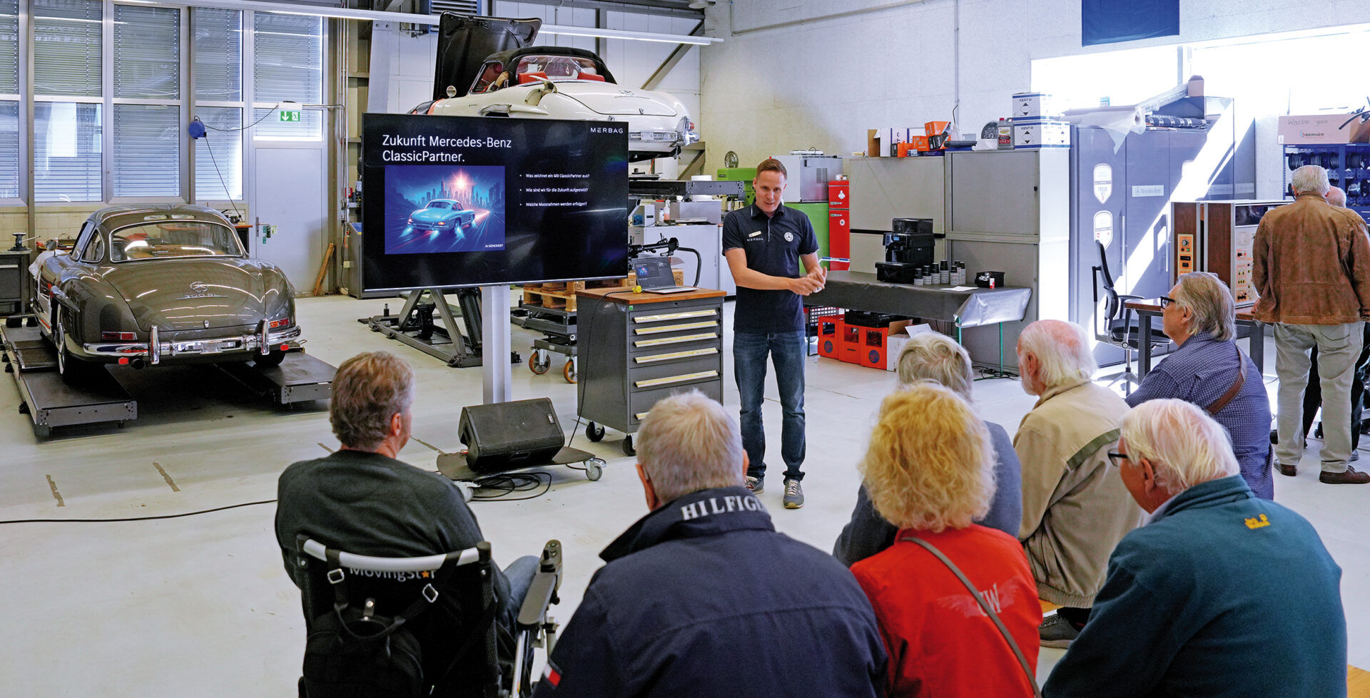 Obwohl am diesjährigen Schraubertag, der am 6. September im Merbag Classic-Center Schlieren stattfand, überhaupt nicht geschraubt wurde, waren die Teilnehmenden vom Anlass in der grössten Mercedes-Benz-Garage der Schweiz hell begeistert.