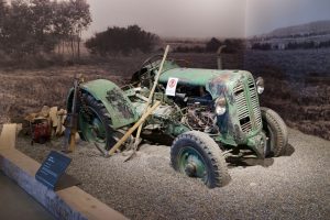 Beim Betreten der Ausstellung erschlug uns die Wirklichkeit: Mächtige, spezielle Baumaschinen, welche die Firma Eberhard in ihrem über 60-jährigen Bestehen verwendete. Dabei wurden durch diesen Familienbetrieb nicht nur Kiesgruben abgebaut, nein, sogar der Flughafen Zürich-Kloten gebaut. Riesige, meist Raupenfahrzeuge sind ausgestellt, in Dimensionen, dass man den Kopf in den Nacken legen musste. Manche der Maschinen glänzen wie neu, andere stehen so da, wie sie ihren letzten Dienst verrichtet hatten. Einige sind in Szene gesetzt; auf Kieshaufen oder auf dem riesigen Misthaufen, der abgearbeitet werden muss.