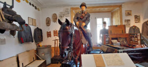Wir wurden in zwei Gruppen eingeteilt und begaben uns auf die Führung, bei der viele Sammlerstücke zu bewundern waren. Einige Mitglieder konnten sich noch gut an einzelne Ausstellungsstücke erinnern. Interessant für mich war die Militärküche, obschon ich nicht gerne koche. Auch die Schuhe und die vielen Fahrräder und auch Motorräder fand ich spannend. Bei den Geschützen habe ich mich gefragt, wie man diese überhaupt auf das Feld gebracht hatte. Die Sammlung ist sehr umfangreich und beinhaltet auch Uniformen und all die verschiedenen Patten.