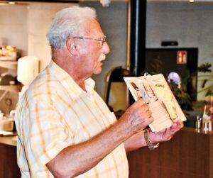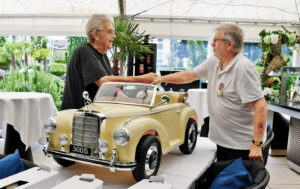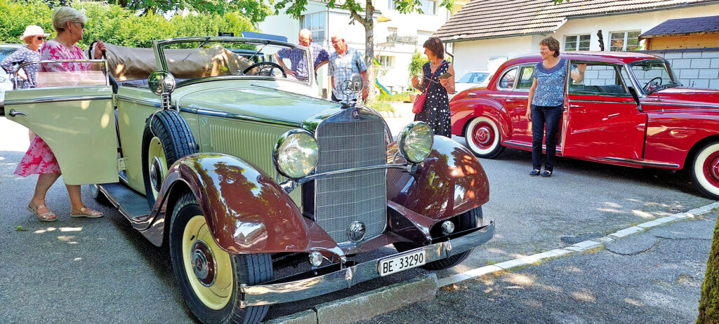 Heinz hatte für uns einen Wettbewerb vorbereitet, dessen Preis vom Hotel Egerkingen gespendet wurde. Eigentlich hätte jeder dieses grosse Modell des Mercedes 300S Cabrio gerne mit nach Hause genommen. Meine Teddybären hätten sich sicher auch gefreut! Das Glück war bei Werner. Er zog den richtigen Weinzapfen, einen «Faustino», und durfte somit den schönen Mercedes mit nach Hause nehmen. Zum Glück schien wieder die Sonne und so fand das grosse Geschenk auch Platz auf dem Rücksitz. Weiter dankte Heinz den Mitorganisatoren mit je zwei Flaschen feinem Schinznacher Kerner. Diese wurden Trudy, Hans Pesche und Bernhard überreicht.