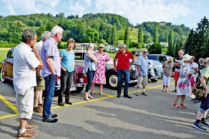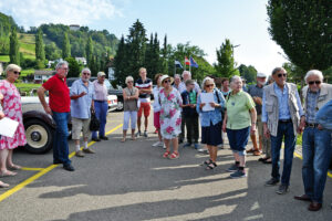 Am Morgen beim Briefing sorgte Georges mit der Hupe für die nötige Aufmerksamkeit. Heinz hiess alle Teilnehmer herzlich willkommen und erklärte uns die geplante Route – obwohl sich sicher niemand verfahren hätte, da Hans Pesche mit Unterstützung von Trudy das Roadbook sehr sorgfältig erstellt hatte. Das Roadbook beinhaltete auch diverse Beschreibungen von Schlössern in den Kantonen Aargau und Luzern, an denen wir während der Ausfahrt vorbeifuhren.