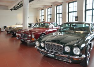 Nach dem geordneten Einparken – unser Organisator Roland Blaser hat mehrere fleissige Helfer – holt uns die Wirklichkeit ein und wir widmen uns Kaffee, Gipfeli sowie weiterem Süssgebäck – nicht zu schweigen von freudigen Begrüssungen nach dem langen Winter. Solchermassen gestärkt und zurück im «normalen» Clubleben, werden wir aufgeklärt darüber, wo wir hier sind: Einerseits durch den Event Koordinator Adrian Senn, andererseits durch einen Kurzfilm, der uns die Entstehung der Emil Frey AG und deren Classic Abteilung aufzeigt. Dann geht es in vier, von kundiger Führung begleiteten Gruppen an die Besichtigung der Sammlung. Auf mehreren Etagen erleben wir den Werdegang des grössten Automobilimporteurs der Schweiz. Zuerst gross geworden mit englischen Autos. Dann in den 60er Jahren erweitert durch japanische Hersteller, allen voran Toyota. Beide Zweige waren Pionierleistungen: Zuerst englische Motorrad-Seitenwagen, dann die daraus entstandenen SS, Jaguars, Rovers und noch viele grosse Marken und schliesslich die damaligen «Exoten» aus Japan. Emil Frey schien unerschrocken und seine Nachfahren treten heute noch mutig in seine Fussstapfen.