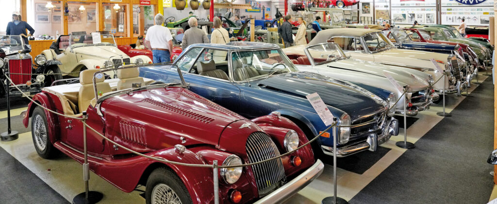 Nachdem diese erste Aufgabe gelöst war, ging es sogleich wieder weiter. Das Ziel des ersten Tourabschnitts war das Fahrzeugmuseum der Familie Junod in Bäretswil. In diesem privaten Museum werden auf 1’400 Quadratmetern die über viele Jahre hinweg zusammengetragenen Schätze gezeigt, darunter natürlich klassische Automobile, aber auch Motorräder, Traktoren, und sogar ein Mirage-Flugzeug und Panzer sind dort zu sehen. Hinzu kommen viele Accessoires der vergangenen 100 Jahre. Für uns wurde eine private Führung in drei Gruppen organisiert. Von den fachkundigen Führern wurde uns so auch noch einiges Hintergrundwissen und die eine oder andere Anekdote vermittelt.