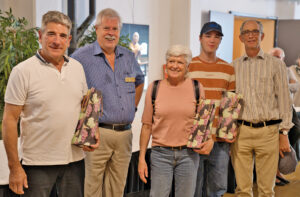 Pünktlich um 16.30 Uhr erwartete uns im «riverside» in Glattfelden, wo am Morgen unsere Reise begonnen hatte, ein zweites Büffet mit kleinen Häppchen und Kuchen. Wer kann da schon widerstehen, obwohl die Mägen längst gut gefüllt sind? Anschliessend stand noch ein kurzer Aufmerksamkeitswettbewerb aus dem Roadbook an. Da gleich drei Teilnehmer punktgleich in Front lagen, entschied das Los: Rita Vetter, Werner Wismer sowie Marlies und Zoelly Kaspar erhielten von Michael Brühl als Preis je eine exklusive «Flut-Wein»-Sonderabfüllung der MBIG (Mercedes-Benz Interessengemeinschaft).
