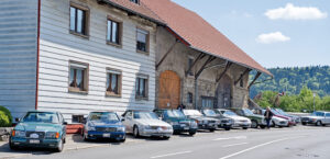 Am Morgen des 10. Mai trafen wir uns – einige waren bereits am Vortag angereist – pünktlich um 8 Uhr im malerisch am Flussufer gelegenen riverside Seminar- und Event-Hotel im zürcherischen Glattfelden. Bei Kaffee und Gipfeli stärkten wir uns für die bevorstehende Ausfahrt. Organisator Michael Brühl hiess die 33 Fahrzeugbesitzer und ihre Gäste willkommen und überreichte die Roadbooks, in denen neben der genauen Streckenführung auch kleine Rätselaufgaben vermerkt waren, die am Abend für die Preisverleihung ausgewertet werden sollten.