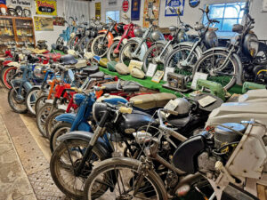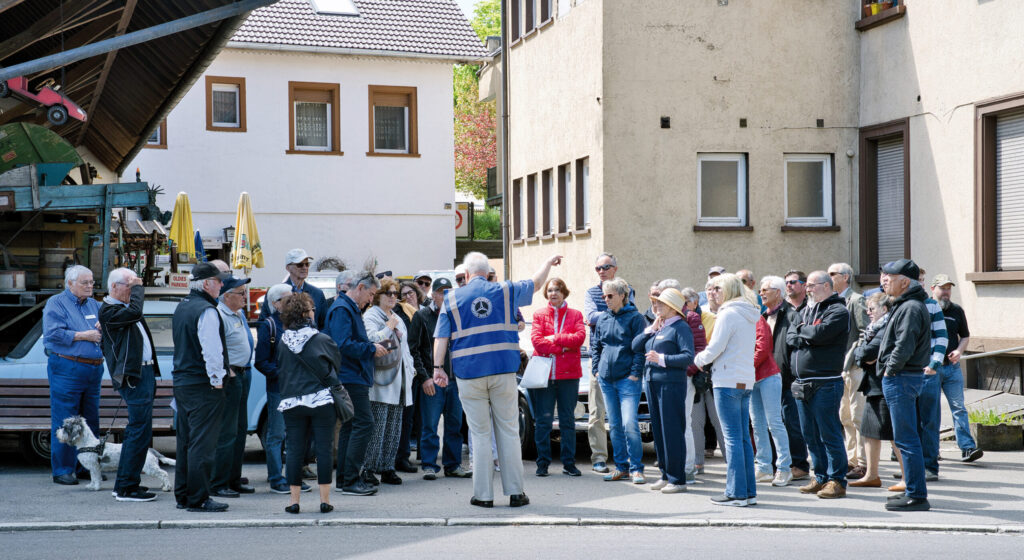 In Blumberg parkierten wir unsere Oldtimer sorgfältig parallel zur Strasse, um sie perfekt in Szene zu setzen. Herbert Riegger, seine Familie und Freunde empfingen uns in der «Moped-Technikwelt», einem liebevoll kuratierten Museum mit über 300 Exponaten: historische Mopeds und Fahrräder renommierter Marken – darunter überraschenderweise auch Miele –, alte Radios, Bügeleisen und sogar Schiffsmotoren. Besonders beeindruckend war die Vielfalt der 50er-Jahre-Mopeds von Achilles bis Zündapp. Bei Kaffee und Kuchen im stimmungsvollen Gewölbekeller liessen wir die erste Etappe Revue passieren.