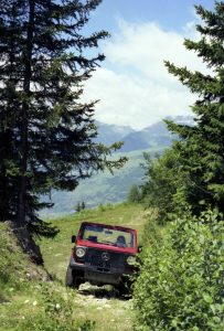 Das Auto erwies sich auch als treues Arbeitstier. Als Fahrzeug passionierter Skifahrer mit Ferienwohnung im Diemtigtal im Berner Oberland musste das Krabbeltier im Winter an jedem Wochenende das mitten auf der Piste liegende Ferienresort erklimmen. Natürlich ohne jegliche Probleme, diese musste man schon zusätzlich suchen; fündig wurden wir auf dem riesigen Parkplatz der Seilbahn. Nach dem Abendessen bereits verlassen und vereist, bot er den geeigneten Tummelplatz. Da der Vierradantrieb bei den anfänglich noch ehrlichen G-Modellen zuschaltbar war, konnten wir den Unterschied zwischen Zwei- und Vierrad-Antrieb austesten und unseren staunenden Passagieren vorführen. Der ist auf der Eisbahn wie zwischen Schmierseife und Schiene. Doch aufgepasst! Das Umdenken zwischen Hinauffahren und Hinunterfahren am Berg ist absolut notwendig. Während man aufwärts mit Vierradantrieb von jeglichem rutschigen Gelände so quasi gar nichts merkt und überall souverän durchkommt, gilt es beim Hinunterfahren die physikalischen Gesetze genauso zu beachten, wie mit Zweiradantrieb. Einzige Erleichterung hierbei ist die Motorbremse, welche über alle vier Räder wirkt, erschwerend ist jedoch das erhöhte Gewicht. Also bitte nicht es dem Toyota-Fahrer gleichmachen, der uns am Ofenpass bergrunter in einer weiten, übersichtlichen Kurve ungeduldig überholen wollte, um dann kreiselnd im seitlichen Schneewall zu landen.