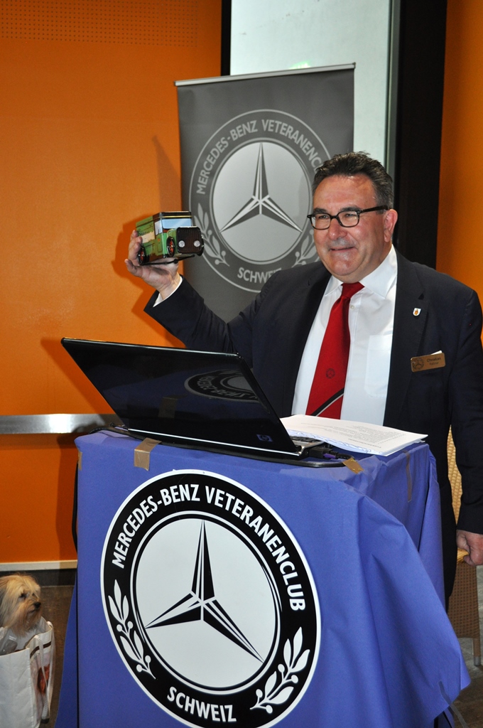Unser Präsident, Christian Haltner, eröffnete die jährliche Hauptversammlung und begrüsste alle Mitglieder. Zum Start zeigte er uns einen «alten Migroswagen», natürlich in Form von einem Spielzeugauto. Vielleicht erinnert sich jemand ja noch an das Original.