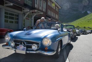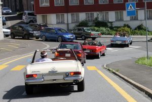 Gut ausgeschlafen begannen wir den Tag auf dem Säntis, denn im Säntisrestaurant gab es ein feines Z’Morgä Buffet mit Appenzeller-Musik dem «Echo vom Spielberg». So ein Säntisfrühstück am Morgen früh bei angenehmer Sommerfrische – ein Erlebnis. Bald ging es wieder per Talfahrt zur Schwägalp, denn es hiess unsere Fahrzeuge für die letzte Etappe bereit zu machen. Der Anblick in der Tiefgarage liess manches Oldtimerherz höher schlagen. Eine Garage voll verschiedenster Typen Mercedes-Fahrzeuge, alle liebevoll gepflegt und gehegt!