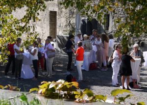 So endet nun der herrliche Tag nach üppigem Mahl, zahlreichen Geschichten und bei strahlendem Sonnenschein. Die 18 frohgemuten und zufriedenen Ritterinnen der Landstrasse beteuern, ihre Wagen doch gerne im nächsten Jahr an einen andern Ort zu lenken und sie freuen sich auf neue Geschichten und Abenteuer in geselliger Runde.