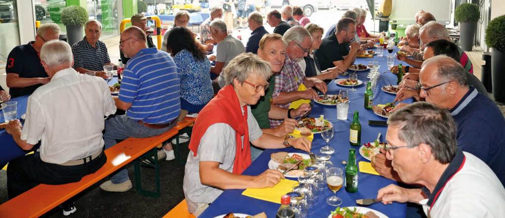 Unterdessen hatten Mitarbeiter der Wetziker Metzgerei Gebr. Weber im Eingangsbereich Tische, Bänke und eine Grillstation aufgebaut. Nachdem alle Kursbesucher sämtliche Stationen besucht hatten, nahmen sie zusammen mit den Experten an den Tischen Platz, um die Spezialitäten vom Grillbuffet zu geniessen. Dabei entwickelten sich angeregte Diskussionen mit den Profis von Auto Trachsler, Meguiar’s und der MFK. So verging die Zeit bei interessanten Benzingesprächen wie im Flug.