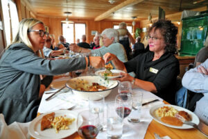 Nun gings zum Zmittag. Auch da erwartete uns eine Überraschung, mussten wir doch die Tische selber decken und das Geschirr wieder zusammenstellen, sonst wären wir zum Abwaschen eingeteilt worden. Die Suppe wurde in einem Kesseli auf den Tisch gestellt zum Selberschöpfen. Auch der feine, bunte Salat kam in einer grossen Schüssel auf den Tisch. Dasselbe beim Hauptgang: Appenzellerschnitzel mit Chäshörnli und Öpfelmues waren sehr schmackhaft! Als Abschluss wurde ein «Schlorzifladen» (Birnenfladen), auch eine Appenzeller Spezialität, mit Kaffee serviert, Espresso gab es keinen! (Dieser war damals noch nicht bekannt)