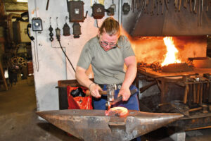 In der alten Werkstätte erwarten uns unzählige handgeschmiedete Werkzeuge für mehr als 20 Berufsgattungen – von schwer und gross für die Baustelle bis klein und fein für den Gürtelmacher. Adrian Meier erzählt uns auf sympathische Art die Geschichte des Schmiedebetriebs, der 1924 von seinem Grossvater Ruppert Meier gegründet worden war. Höhepunkt der Führung ist die Live-Schmiedevorführung der jungen Schmiedin Angelika Brändle, die aus einem Vierkant-Rohling mit viel Schweiss und «Manneskraft» ein Hufeisen formt.