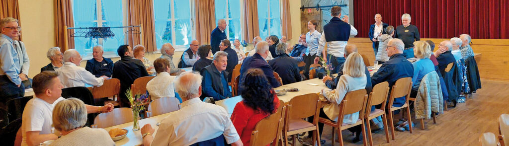 Nach einem erfrischenden Apéritiv (herzlichen Dank an Frau Frick) geht die Fahrt zum gemeinsamen Abendessen in den «Toggenburgerhof» in Kirchberg. Nach dem Essen und anschliessendem gemütlichen Zusammensein fahren elf Teilnehmende zum Übernachten zurück nach Mosnang, während sich 16 in ihre Zimmer im «Toggenburgerhof» zurückziehen. Ausnahmsweise gehen wir mit den Hühnern ins Bett, denn am nächsten Tag ist um 6.30 Uhr Tagwache.