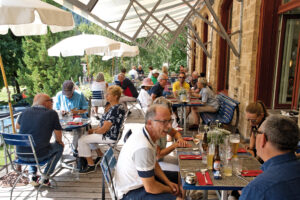 Nach dem Rundgang versammelte sich die Gesellschaft im gutseigenen Restaurant zum kulinarischen Ausklang des Nachmittags. Sowohl das Drei-Gänge-Menü als auch die zur Auswahl stehenden Begleiter aus dem Eichengut-Weinkeller lösten bei den anspruchsvollen Gästen Begeisterung aus.