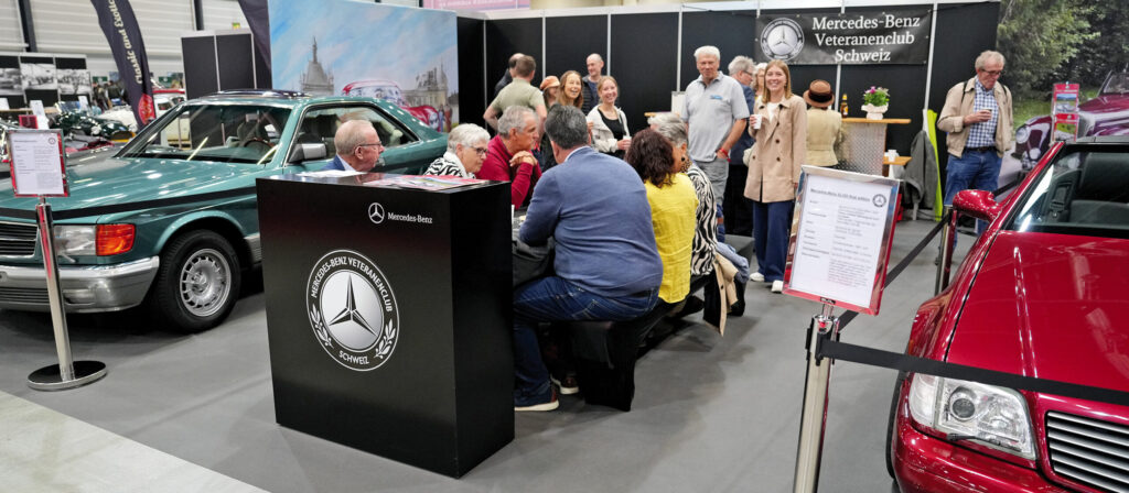 Nicht nur Oldtimer-Händler und Anbieter von Zubehör, Dekoartikeln und Dienstleistungen waren mit ihren Umsätzen zufrieden, auch Donat Keusch, der dieses Jahr wie gewohnt für den Stand des MBVC zuständig war, freute sich über regen Besuch. Neben Clubmitgliedern, die sich am MBVC-Stand bei einem Espresso oder einem Glas Wein zu einem Schwatz trafen, zählten erfreulicherweise auch Oldtimer-Enthusiasten zu seinen Gästen, die (noch) nicht Mitglieder sind und sich über den Club und seine Angebote informieren wollten.
