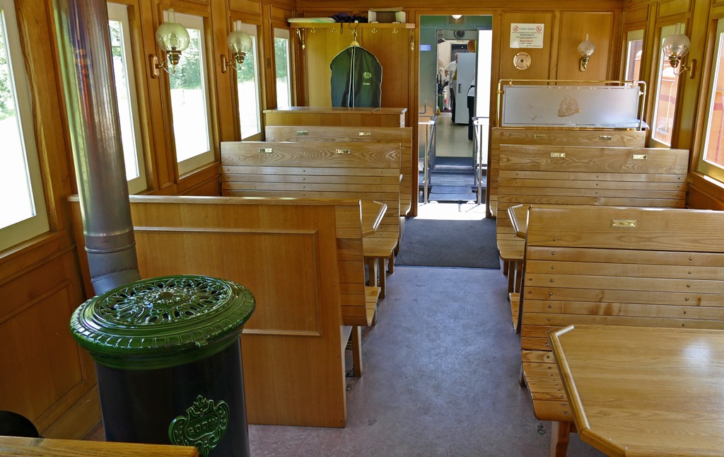 Der Erhalt von historisch wertvollen Betriebsanlagen im Bahnhof Sihlwald gehört ebenfalls zu den Aufgaben des Vereins. Und genau diese Betriebsanlagen samt historischen Loks und Waggons wurden uns nach dem Apéro unter kundiger Führung von Eisenbahn-Nostalgie-Freunden mit viel Herzblut gezeigt und erklärt. Der schmucke Erste-Klasse-Wagen aus dem Jahre 1897 wurde ebenso bestaunt wie derjenige für die «Holzklasse», in einem anderen war noch der grüne Kachelofen für kalte Winterreisen zu bestaunen. Das Highlight bildeten aber die beiden Dampfloks «Hansli» und «Schnaaggi-Schaaggi», welche bis 1926 resp. 1962 im täglichen Einsatz waren. Dazu wurden uns viele dampftechnische Details erklärt, die die Schreibende hier leider nicht wiederzugeben vermag!