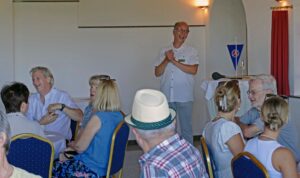Noch vor dem herzhaft schmeckenden Dessert-Kelch verabschiedet sich Donat von seinem treuen «Publikum» und tut seine Freude über die unfall- und pannenfreien Fahrten kund. Er wie auch alle im Saal freuen sich bereits auf den nächsten Grillplausch. Bei dieser Gelegenheit übernimmt auch Gary, unser neuer Präsident, das Wort und bedankt sich bei den Organisatoren, bei Donat und seinen Helferinnen Liliane, Patricia sowie ihren Töchtern Lara und Amy. Eine Teilnehmerin wirft ein: Man könne die Fahrt auch als «Viel-Seen-Fahrt» bezeichnen und rasch werden sieben Seen, die wir gesehen haben, aufgezählt: Zürichsee, Wilersee, Hüttnersee, Sihlsee, Ägerisee, Lauerzersee und Zugersee.