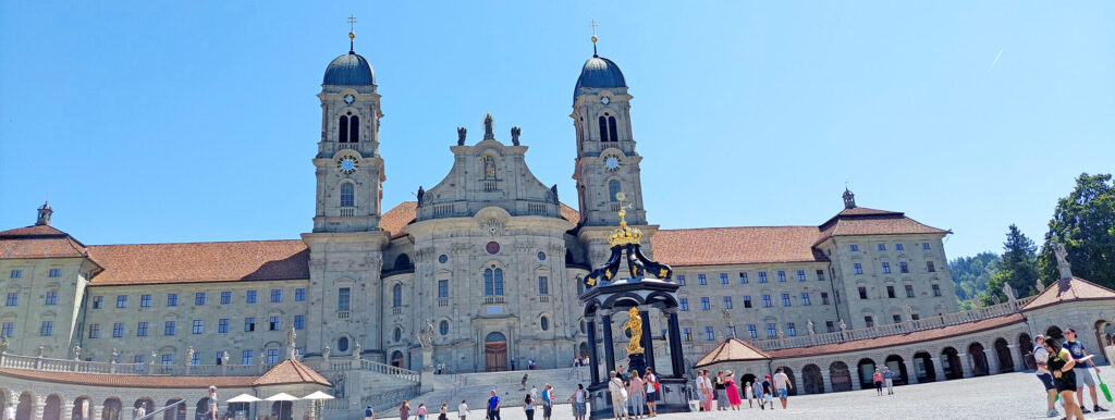 Nach dem obligaten Kaffee und Gipfeli hupt Donat für Aufmerksamkeit, um uns über die Tücken der Strecke nach Einsiedeln zu orientieren – diese sind im Roadbook auch konsequent rot gedruckt. Er kann auch drei Neumitglieder begrüssen: Keller Michel mit Tamara sowie Bürki Max. Punkt 9:00 Uhr ist dann Start, doch auf der ersten freien Strecke halten wir kurz rechts an, damit sich die Kolonne wieder findet. So bleibt diese auch mehr oder minder vollständig zusammen – sehr zur Freude der spontanen Zuschauer – bis zum Eintreffen in Einsiedeln. Dazwischen erwartet uns eine wunderschöne Fahrt durchs Knonaueramt, am Kloster in Kappel am Albis vorbei, weiter über Sihlbrugg, Menzingen, Schindellegi und Biberbrugg nach Einsiedeln.